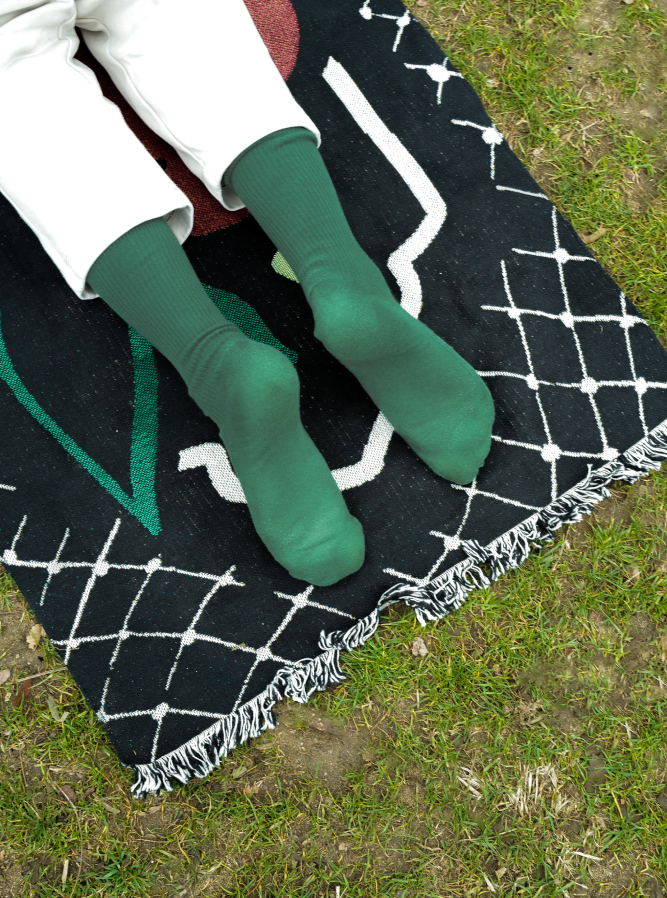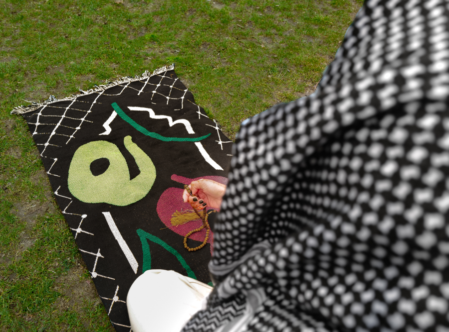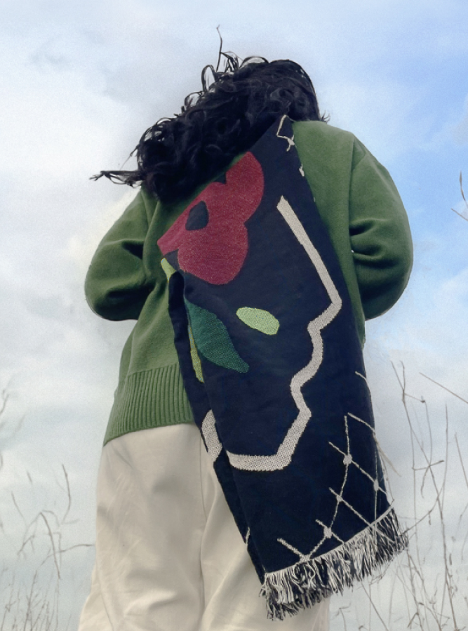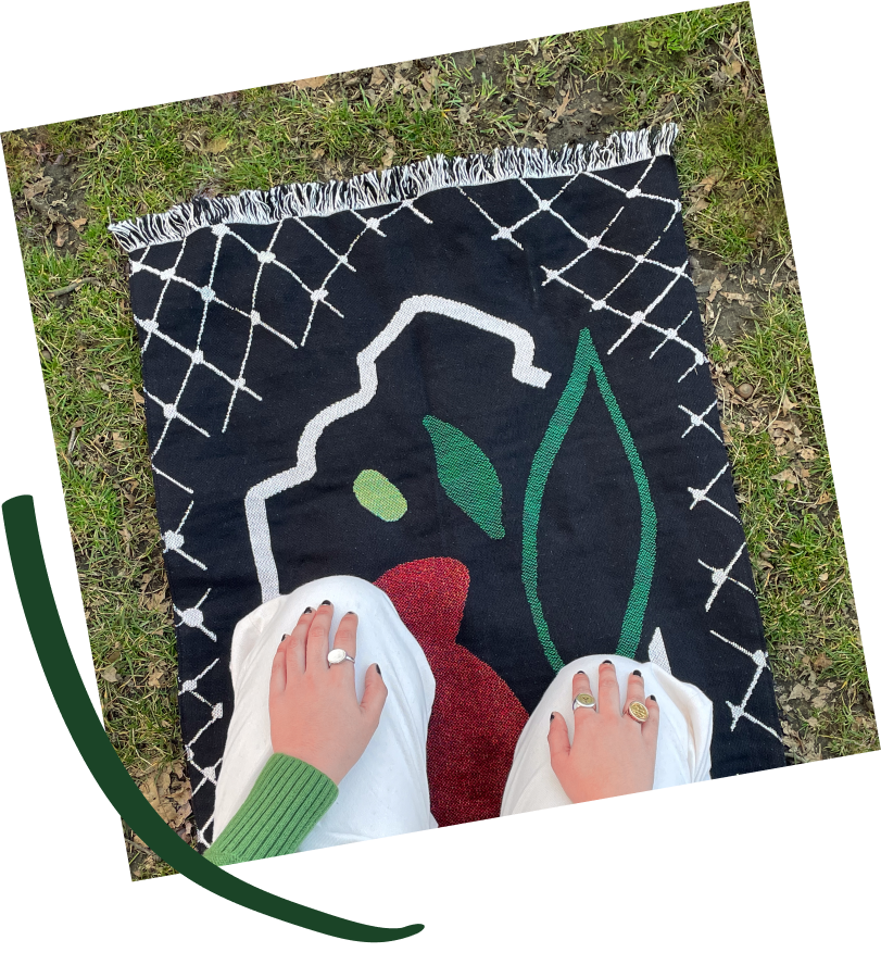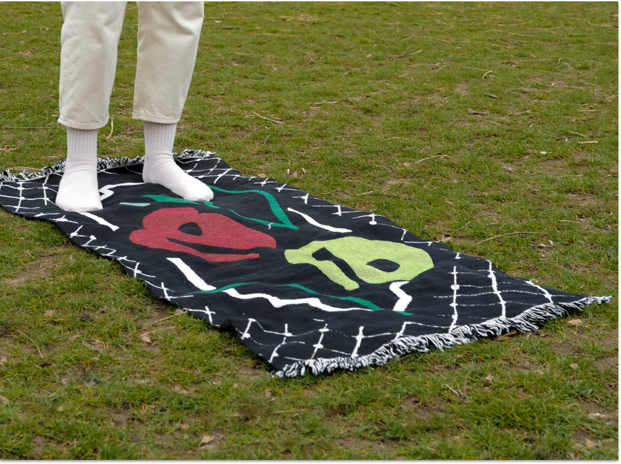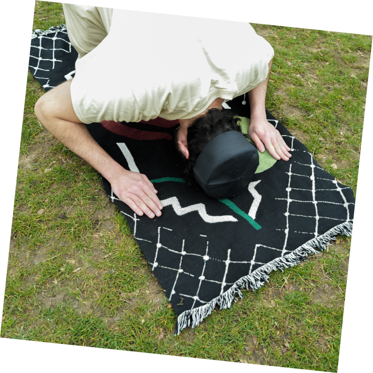 Qowha (Strength / قوه ) is the ability to stay firm in the face of daily struggle and atrocities. The cotton prayer mat has an abstracted olive and poppy to symbolize hope, peace, and a deep-rooted strength to hold onto whatever may come.